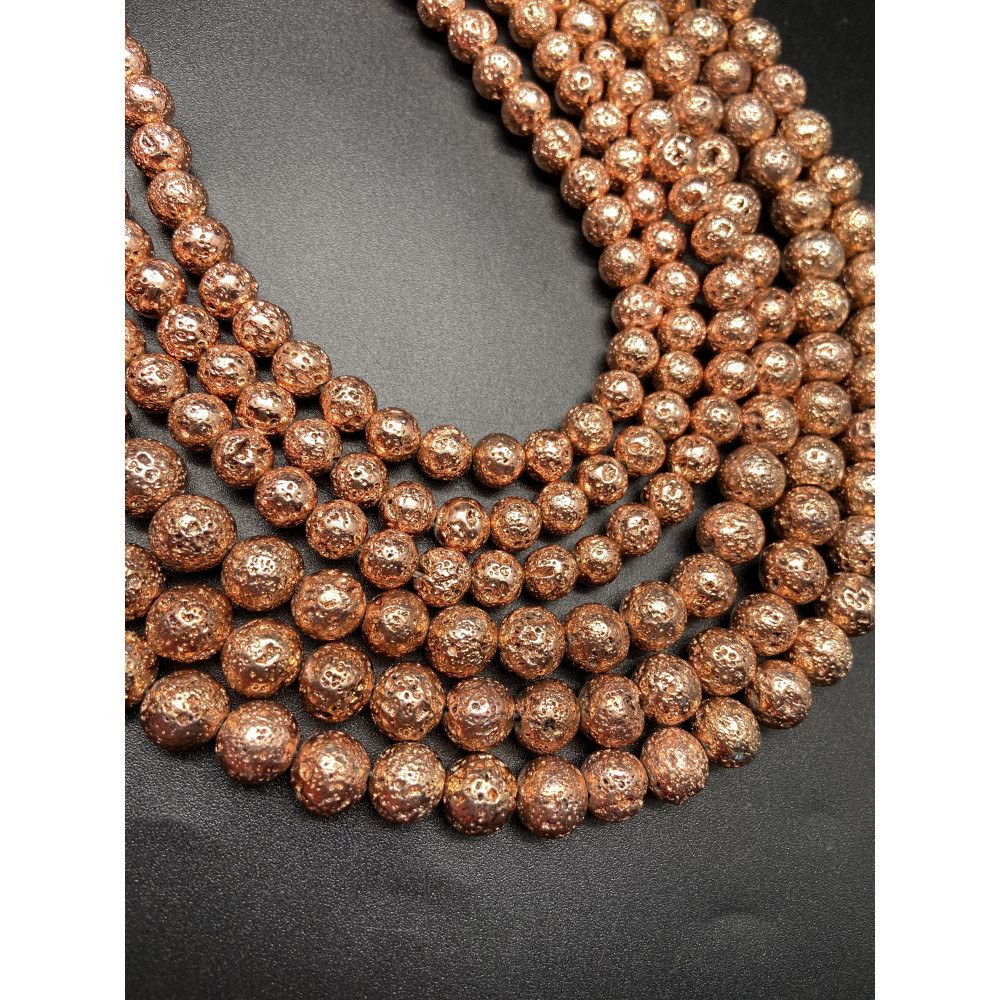 Каменные бусины, Вулканическая лава металлизированная, цвет розовое золото, 8 мм, длина нити 38 см