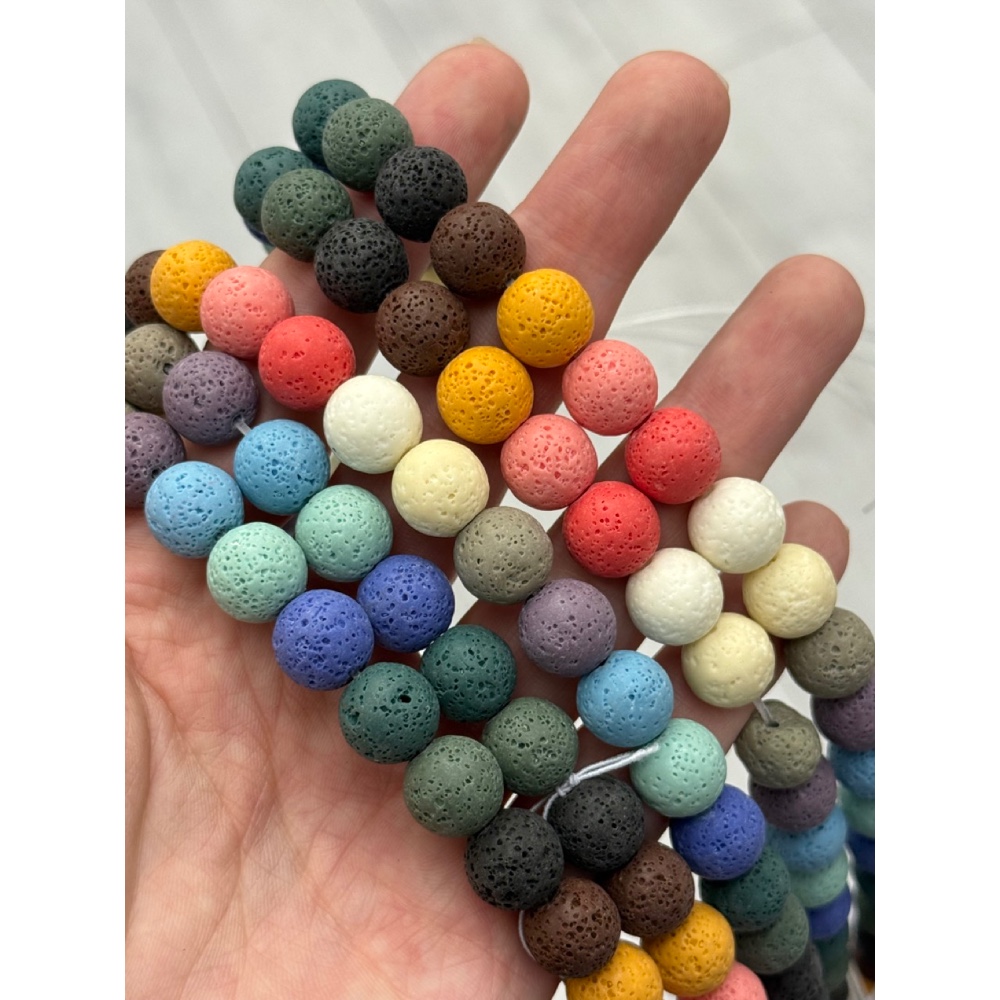 Технические характеристики Каменные бусины, вулканическая лава, люкс, пористая, тонированная, микс цветов, шарик гладкий, 12 мм, длина нити 37 см