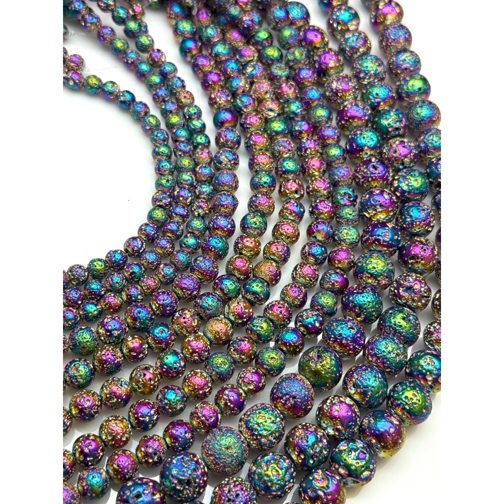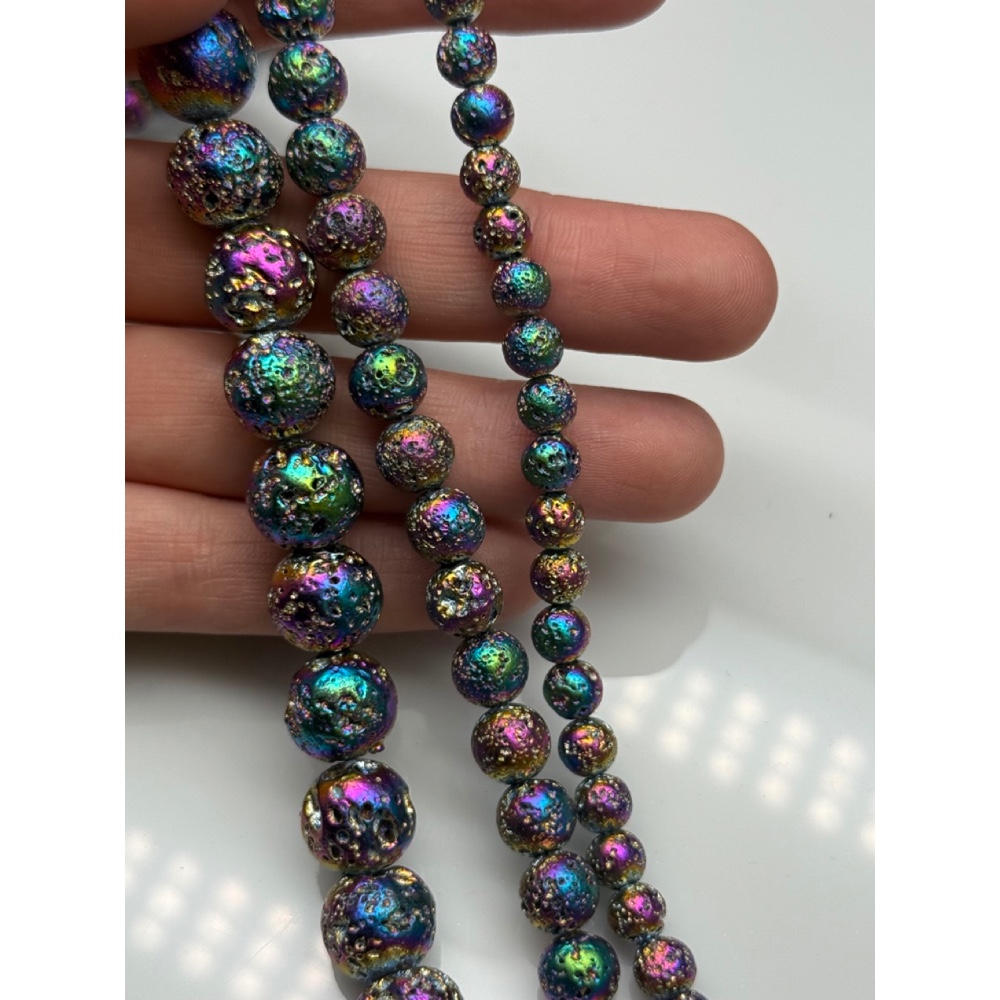 Каменные бусины, Вулканическая лава металлизированная, цвет радуга, 12-12,5 мм, длина нити 38 см