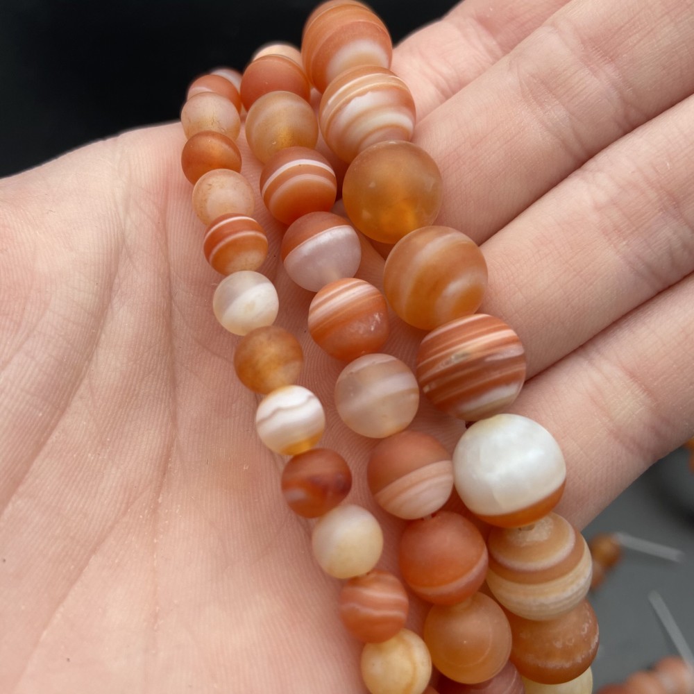 Каменные бусины, Агат Ботсвана, матовый, персиковый, шарик гладкий, 6 мм, длина нити 38 см