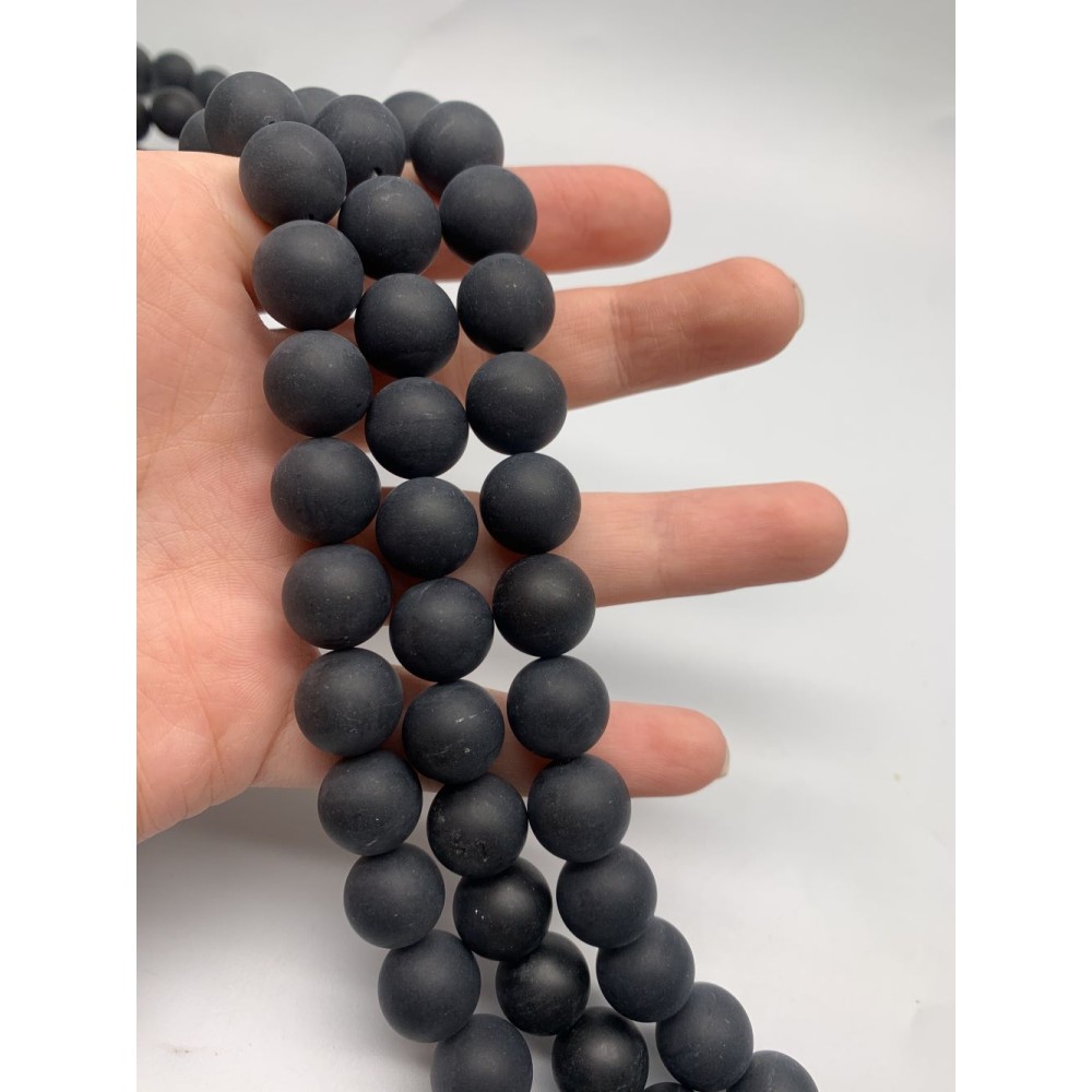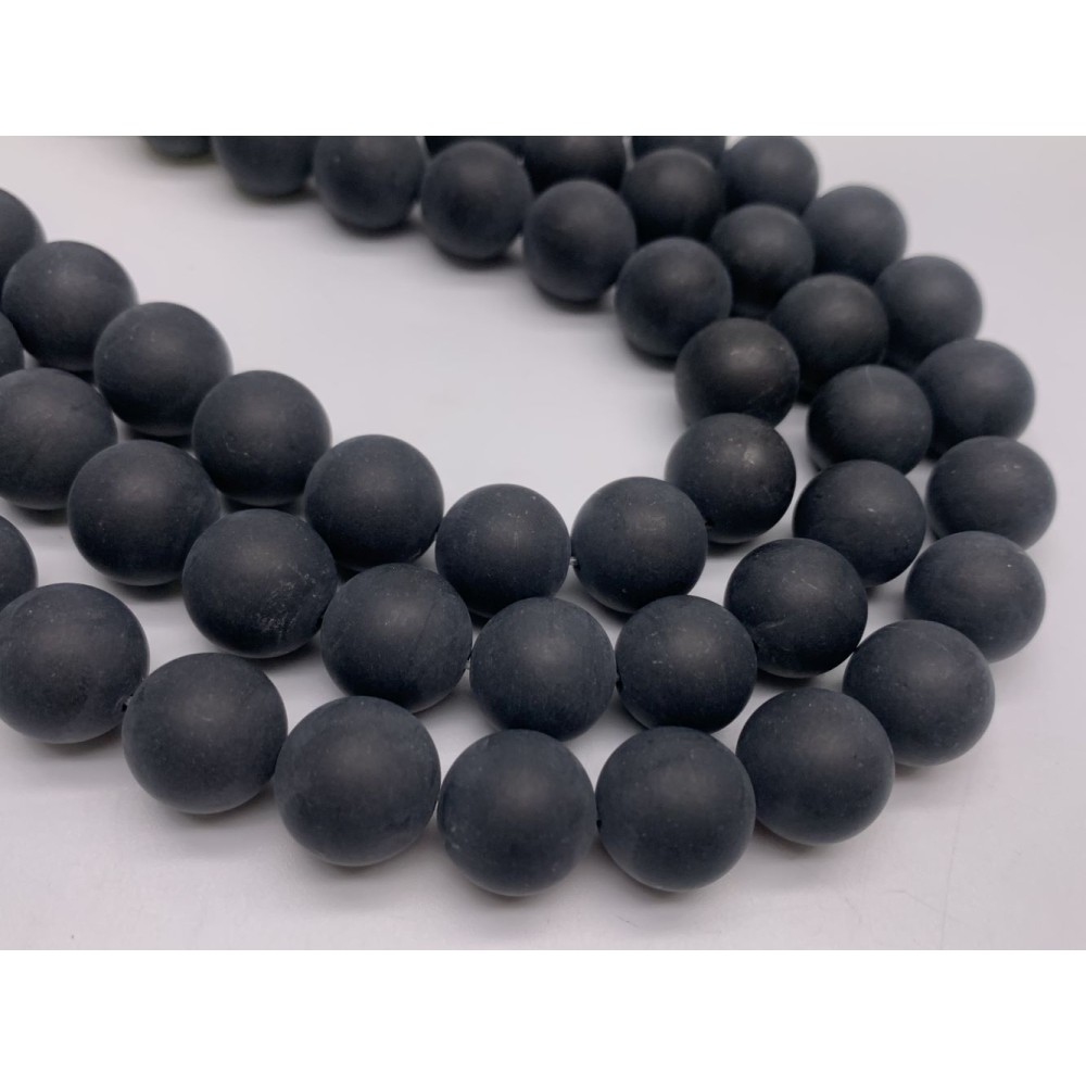 Каменные бусины, Агат, чёрный, матовый, шарик гладкий, 14 мм, длина нити 38 см 0 630 ₽