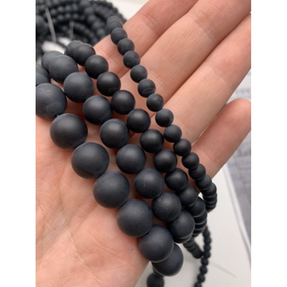 Теги: Каменные бусины, Агат, чёрный, матовый, шарик гладкий, 8 мм, длина нити 38 см, 11529, Бусины гладкие