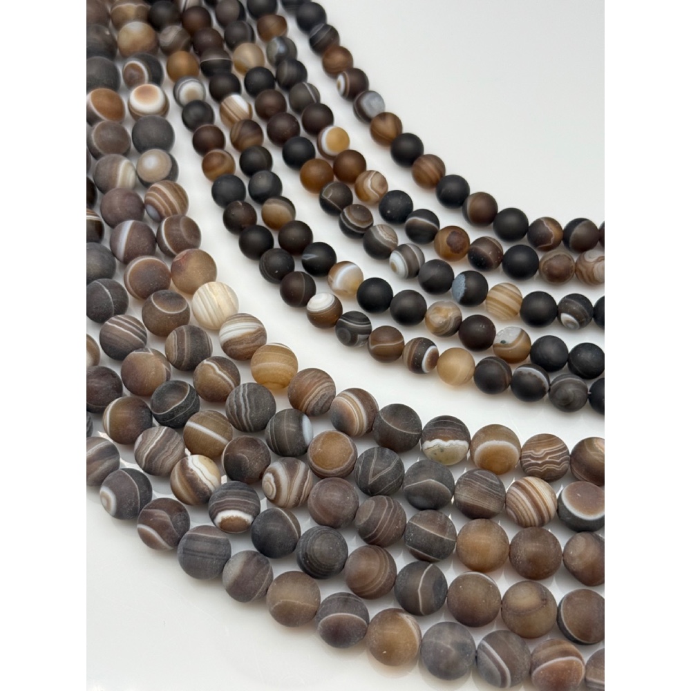Технические характеристики Каменные бусины, Агат, темный коричневый микс, матовый, шарик гладкий, 10 мм, длина нити 38 см