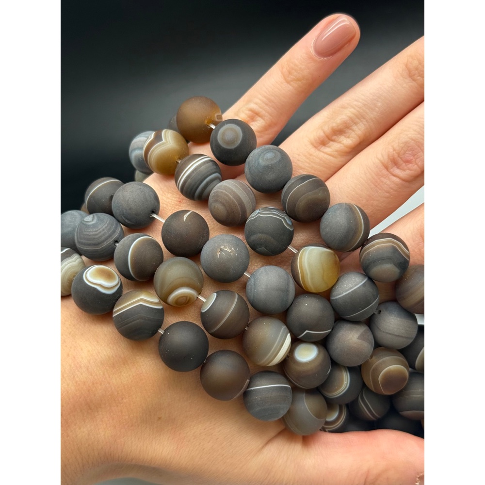 Теги: Каменные бусины, Агат, темный коричневый микс, матовый, шарик гладкий, 14 мм, длина нити 39 см, 21608, Бусины гладкие