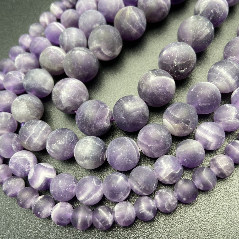 Каменные бусины, Аметист с полосками, матовый, шарик гладкий, 6 мм, длина нити 38 см