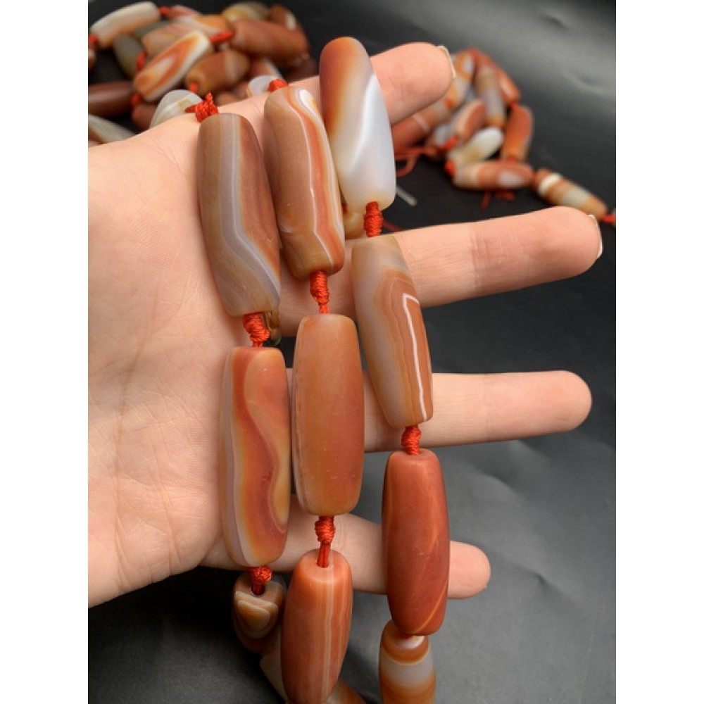 • Каменные бусины, Дзи природные, Сердолик, мульти, матовый, 40х13 мм, 8 штук на нити