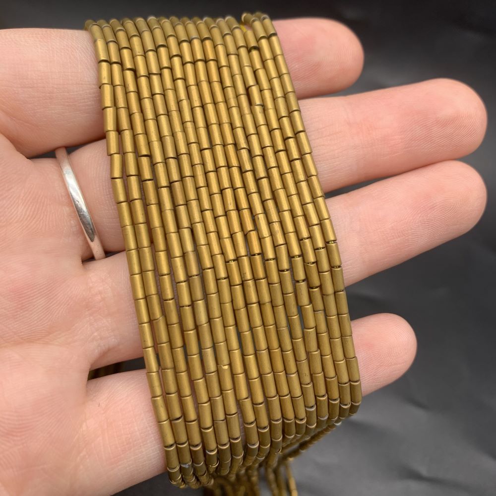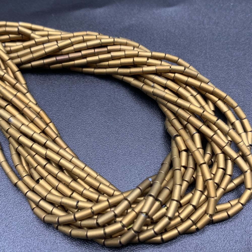 Каменные бусины, Гематит синтетический, цвет золото, матовый, трубочки, размер 4х2 мм, нить 38 см