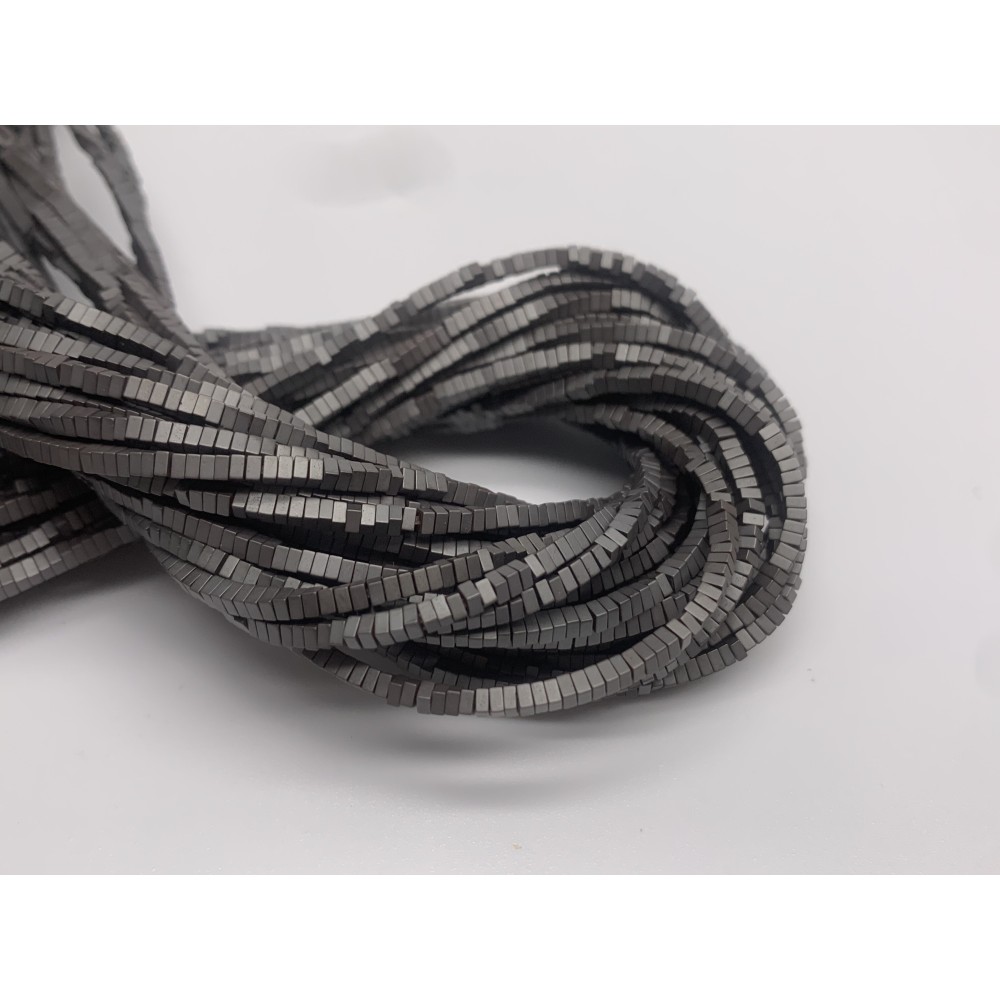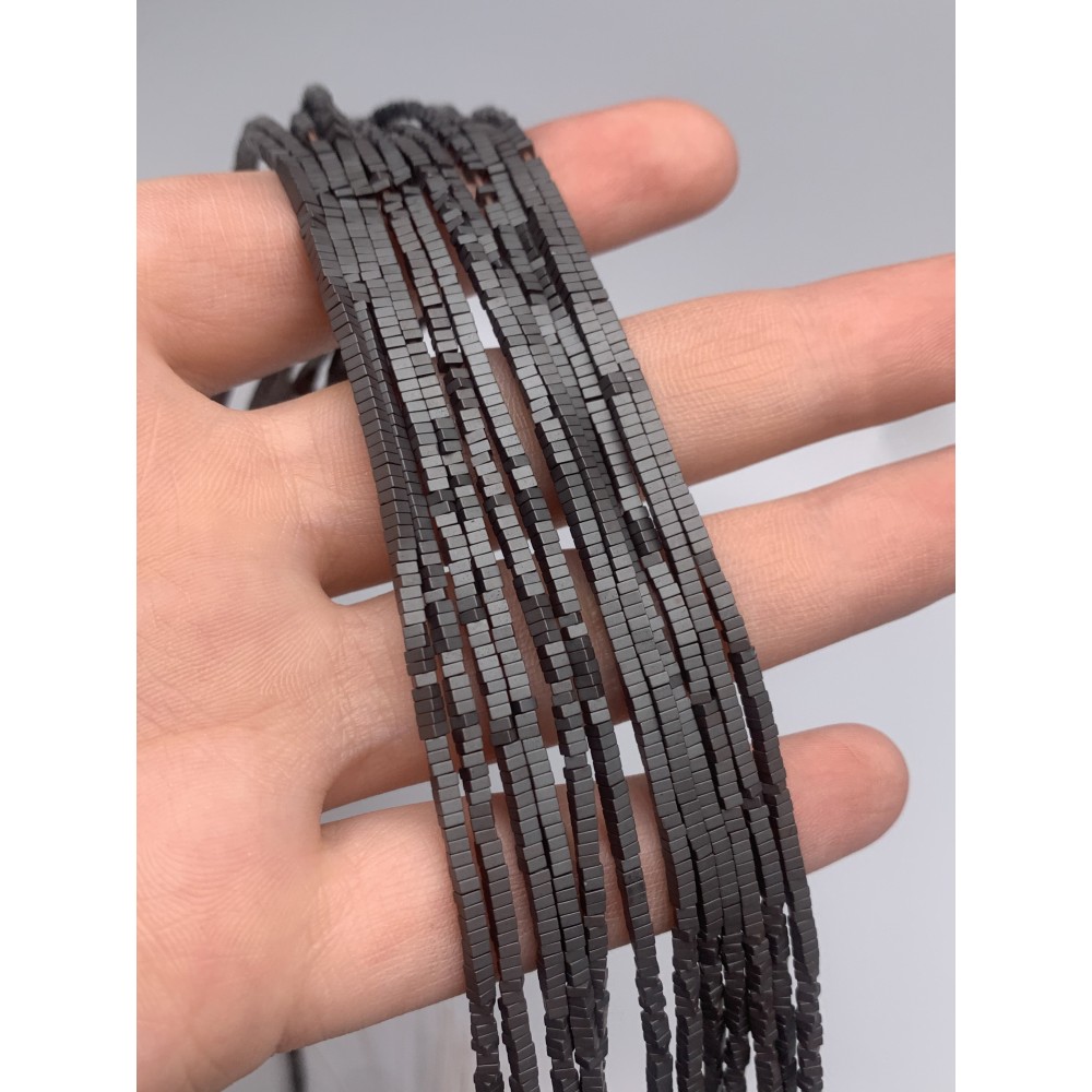 • Каменные бусины, Гематит синтетический, квадрат, темное серебро, матовый, размер 2х1 мм, нить 38 см