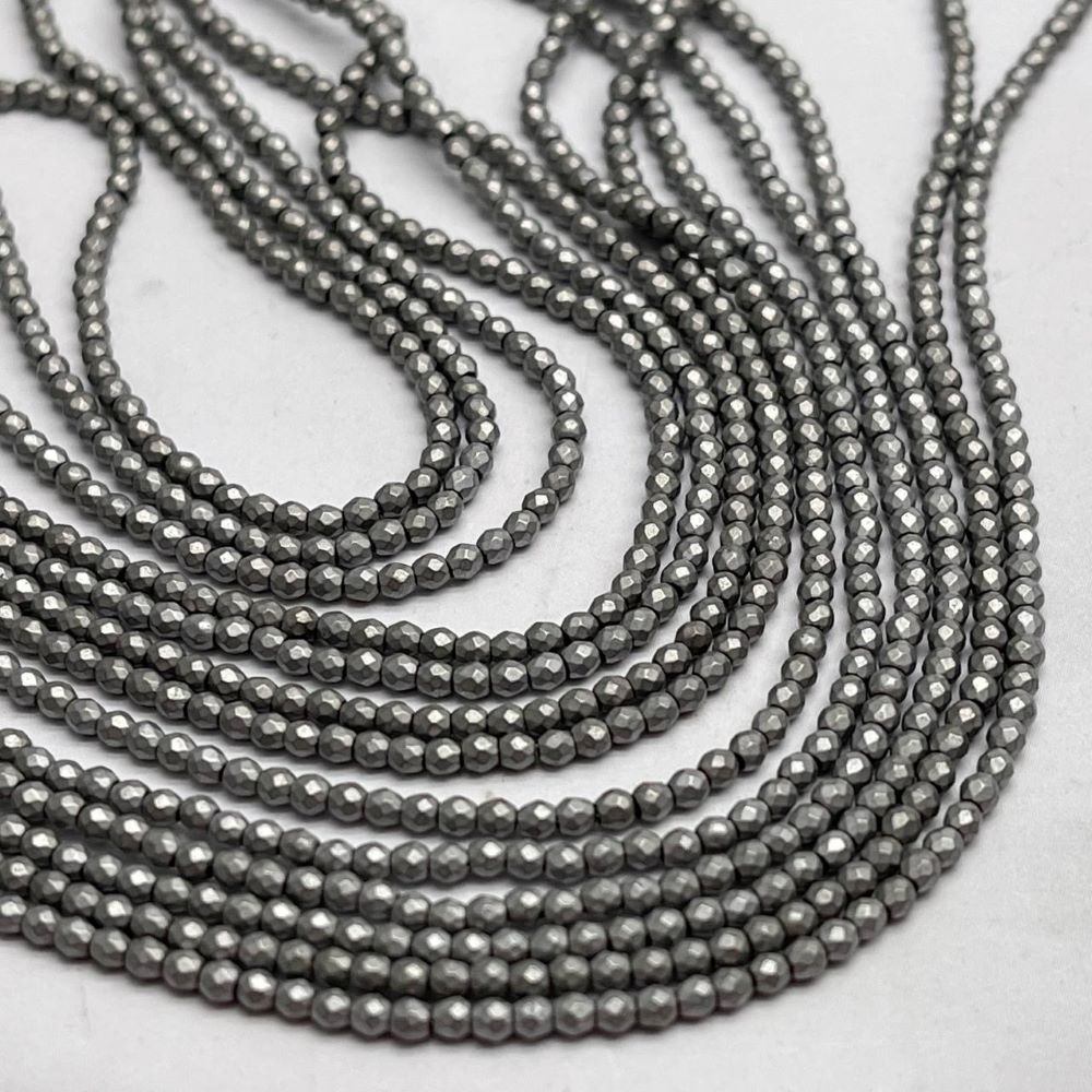 Каменные бусины, Гематит синтетический, серебро, матовый, шарик огранка, размер 2 мм, нить 38 см