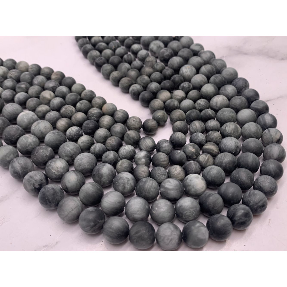 Каменные бусины, Хризоберилл, Кошачий глаз, серый, матовый, шарик гладкий, 8 мм, длина нити 38 см