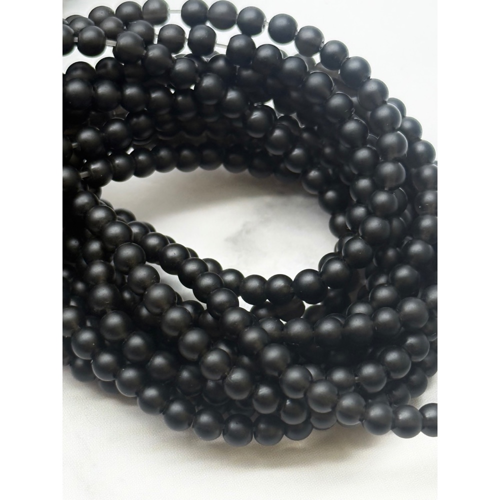 Теги: Каменные бусины, Обсидиан черный, матовый, шарик гладкий, 4 мм, длина нити 38 см, 21392, Бусины гладкие