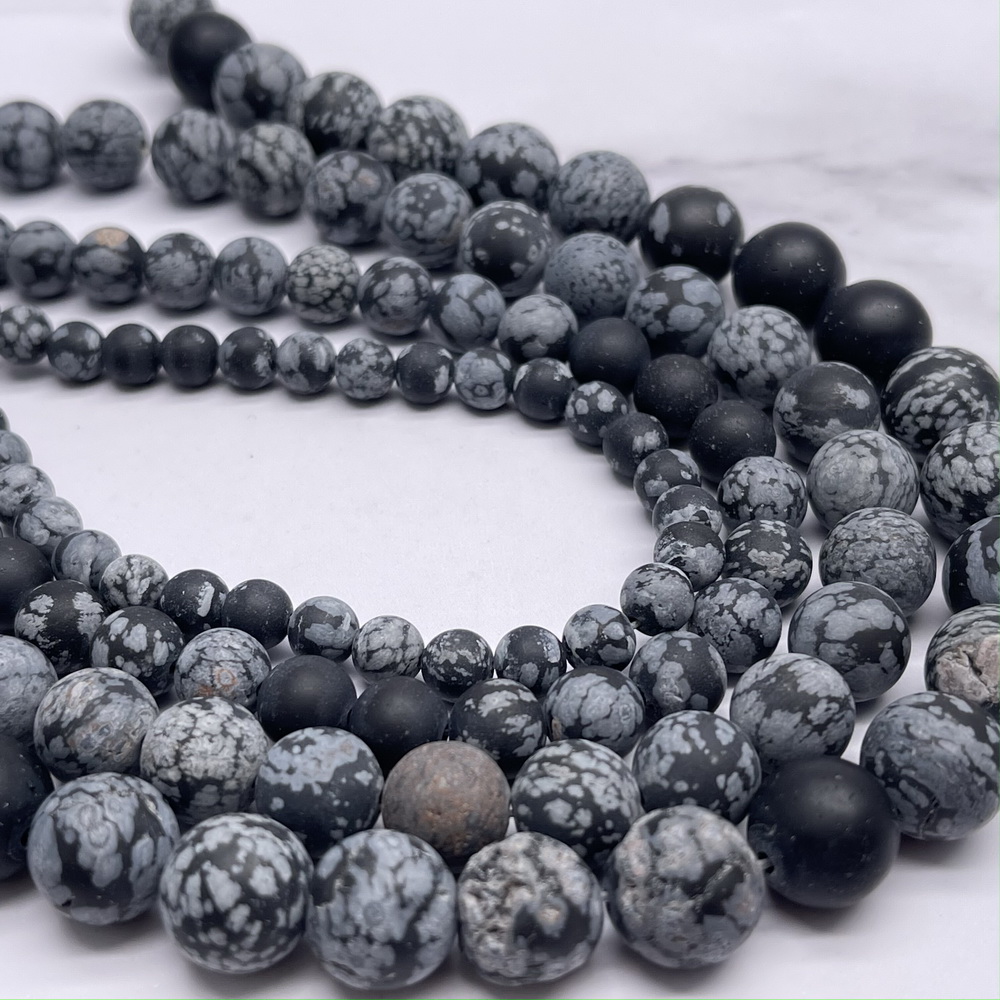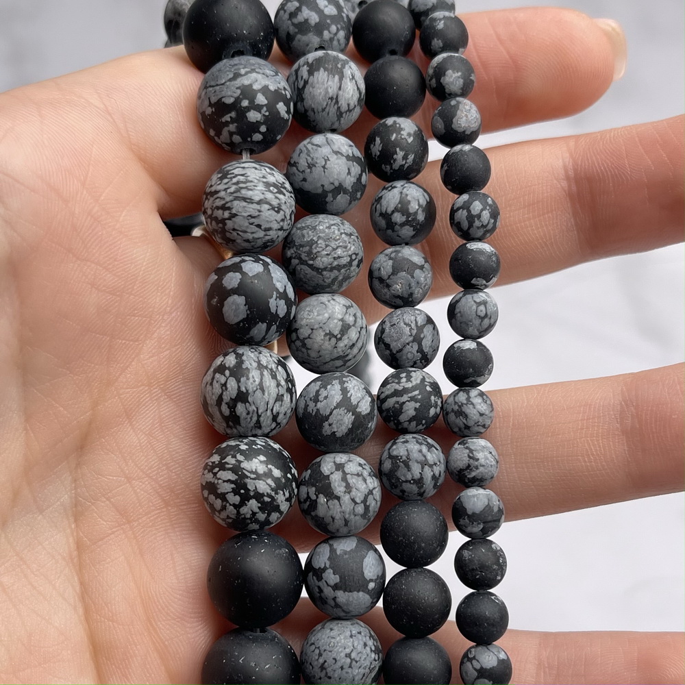 Каменные бусины, Обсидиан снежный, матовый, шарик гладкий, 12 мм, длина нити 38 см