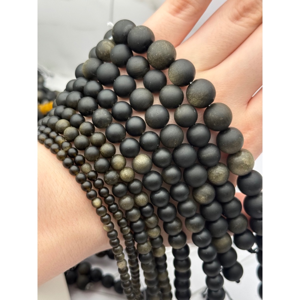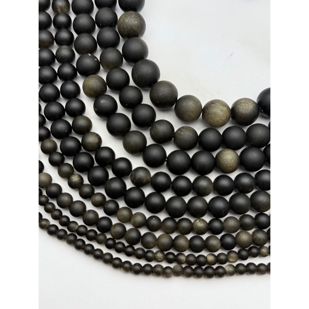Теги: Каменные бусины, Обсидиан золотой, матовый, шарик гладкий, 4 мм, длина нити 38 см, 21012, Бусины гладкие