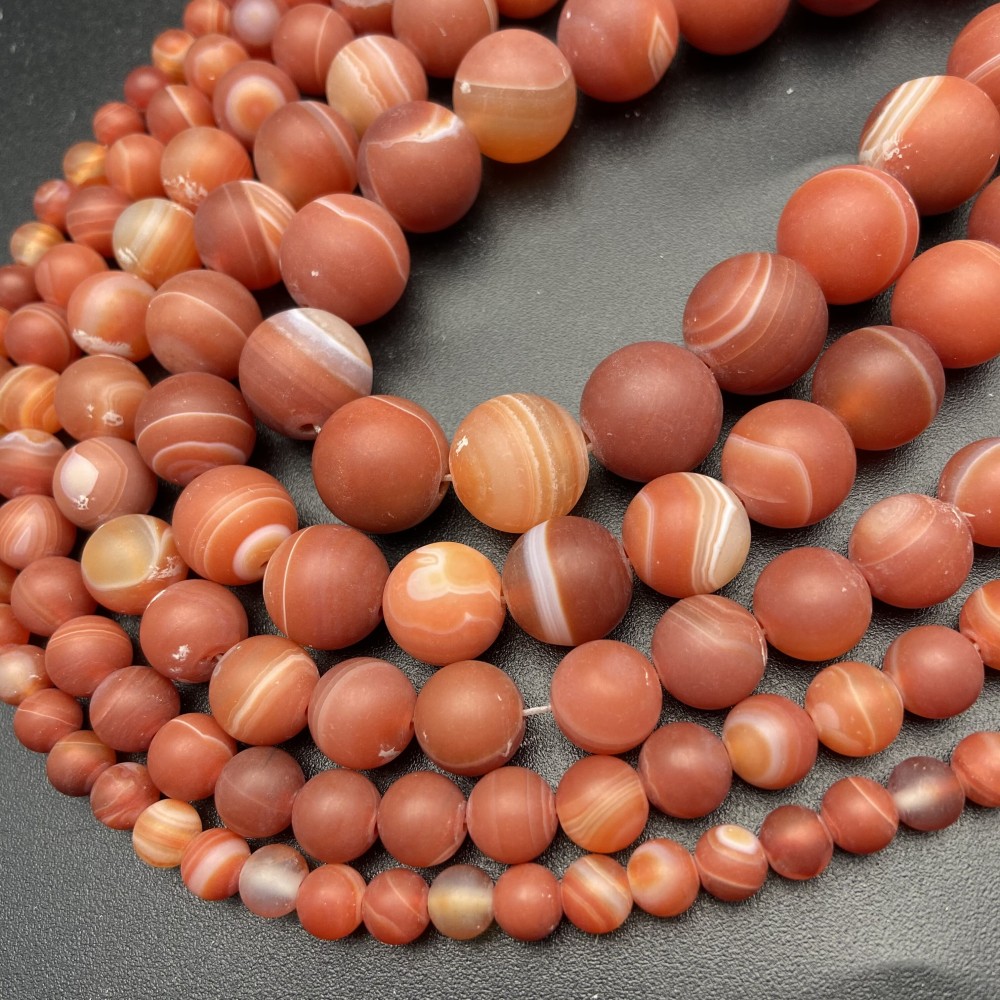 Каменные бусины, Сердолик, с полосками, матовый, шарик гладкий, 6 мм, длина нити 38 см
