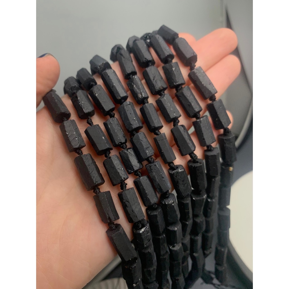 Каменные бусины, Турмалин, чёрный, Шерл, матовый, не обработанный, фриформы, 12-15 мм, длина нити 38 см