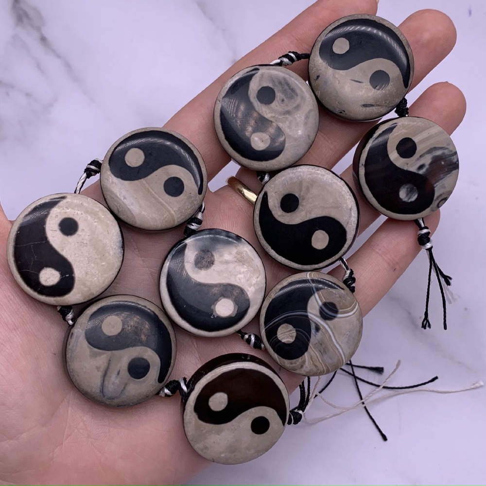 Каменные бусины, Агат, Инь-Янь, плоская бусина, 30х9 мм, 1 шт