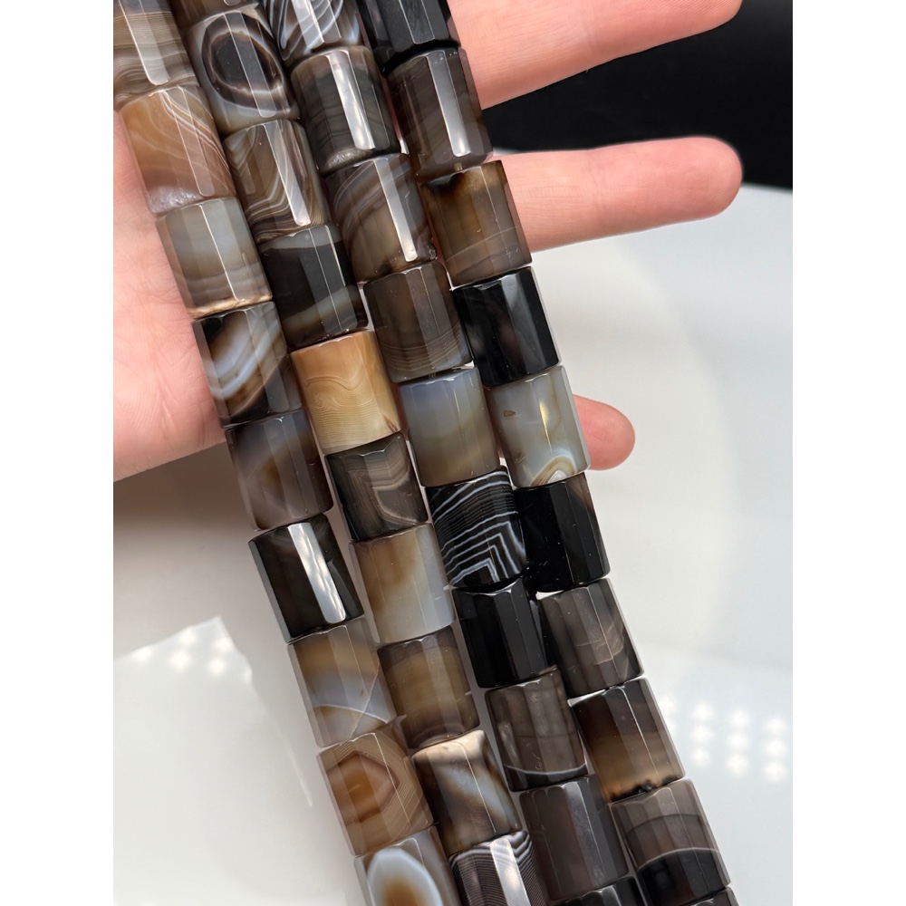 Каменные бусины, Агат "кофейный", (натуральный цвет), трубочки (столбики), огранка, ~18х14 мм, длина нити 39 см