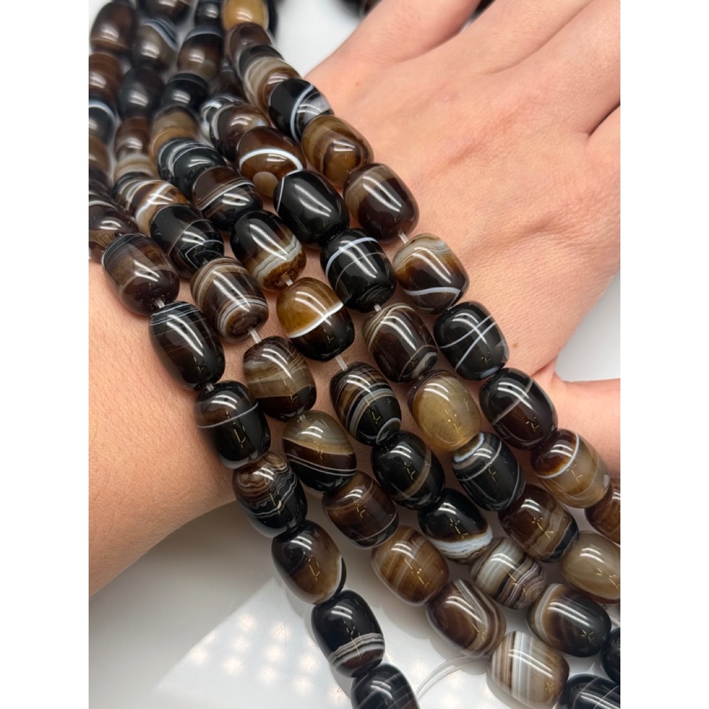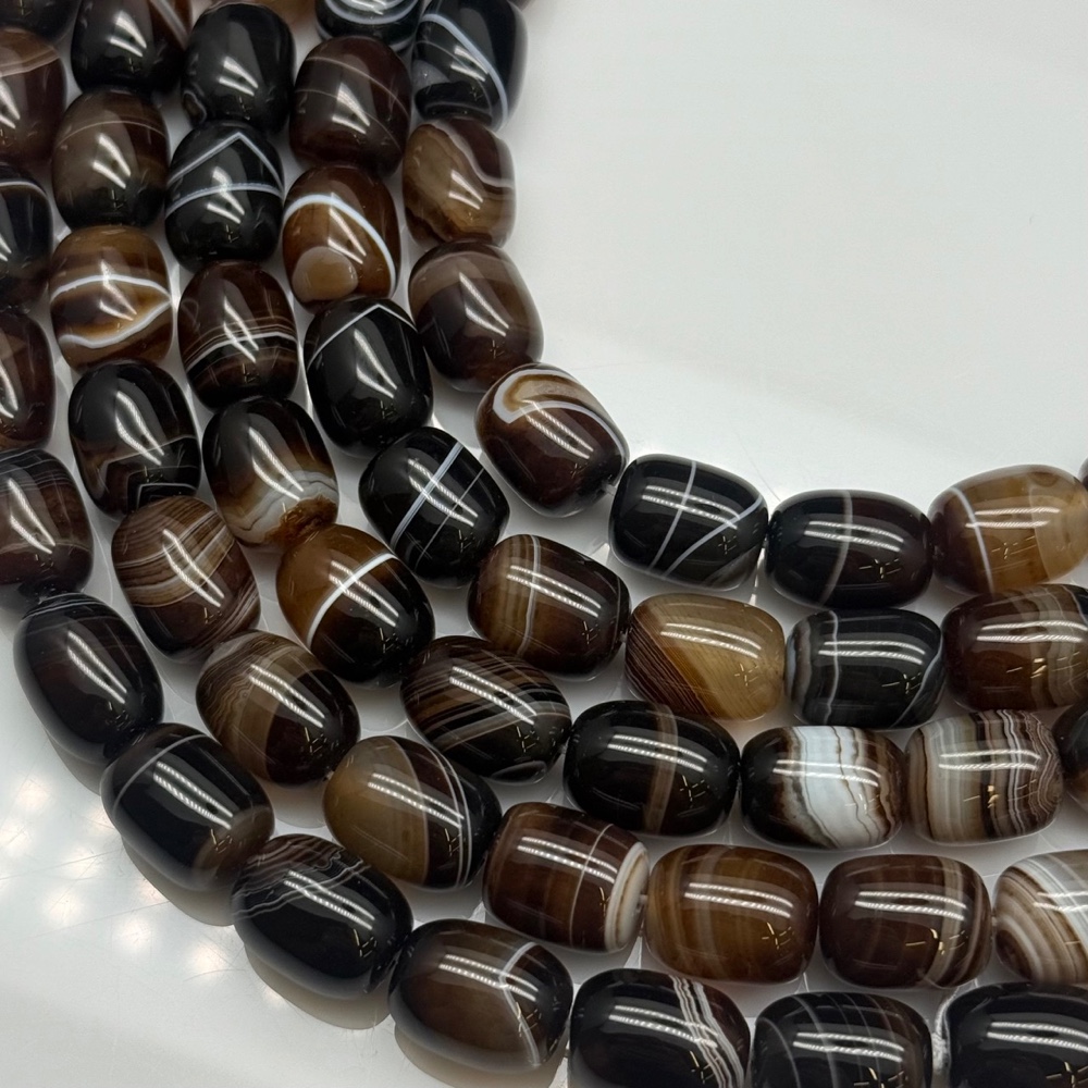 Каменные бусины, Агат коричневый, бочонок, 16х12 мм, длина нити 38-39 см