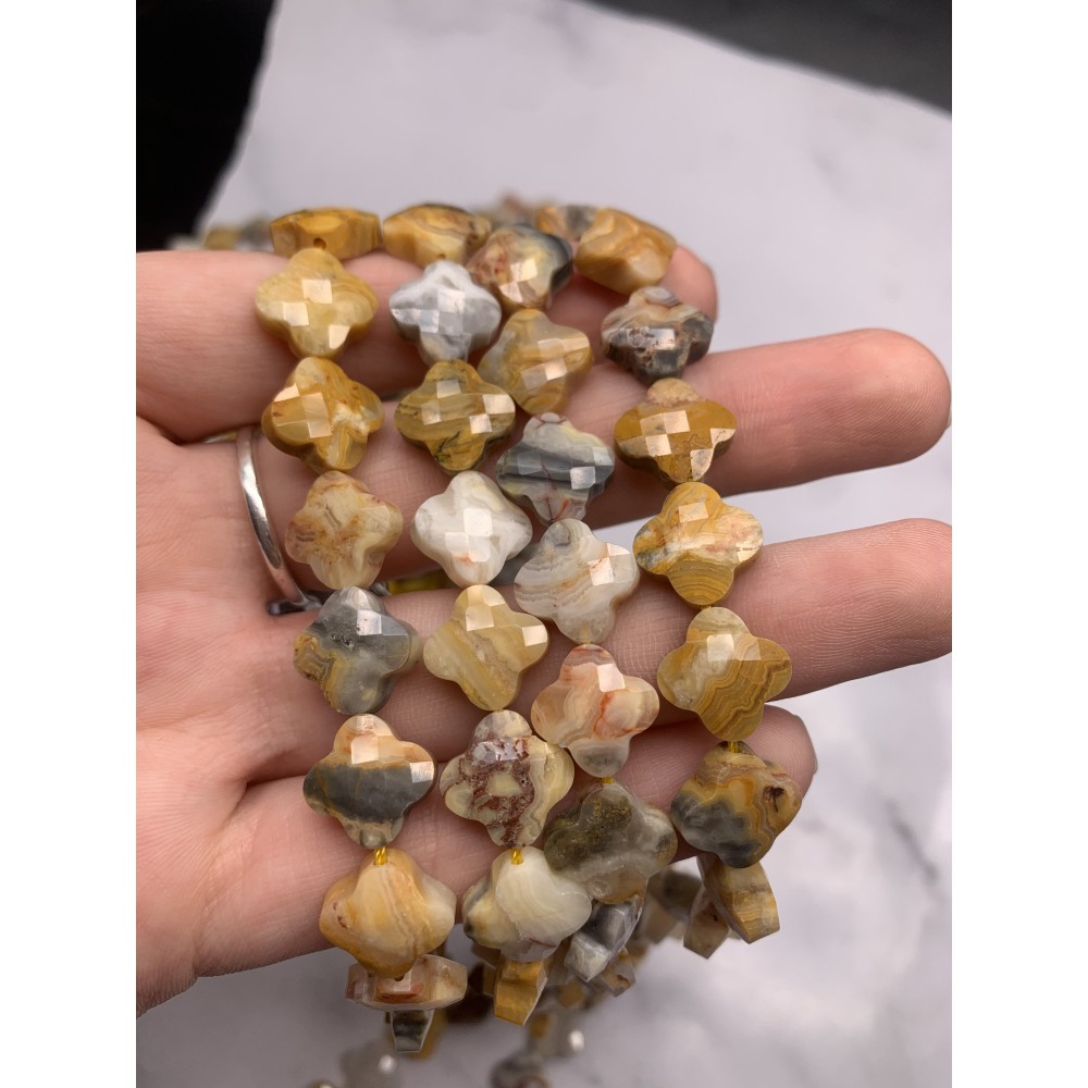 Каменные бусины, Агат кружевной, (Crazy Agate), клевер, в огранке, 13х6 мм, длина нити 38 см, 30 бусин 0 1680 ₽