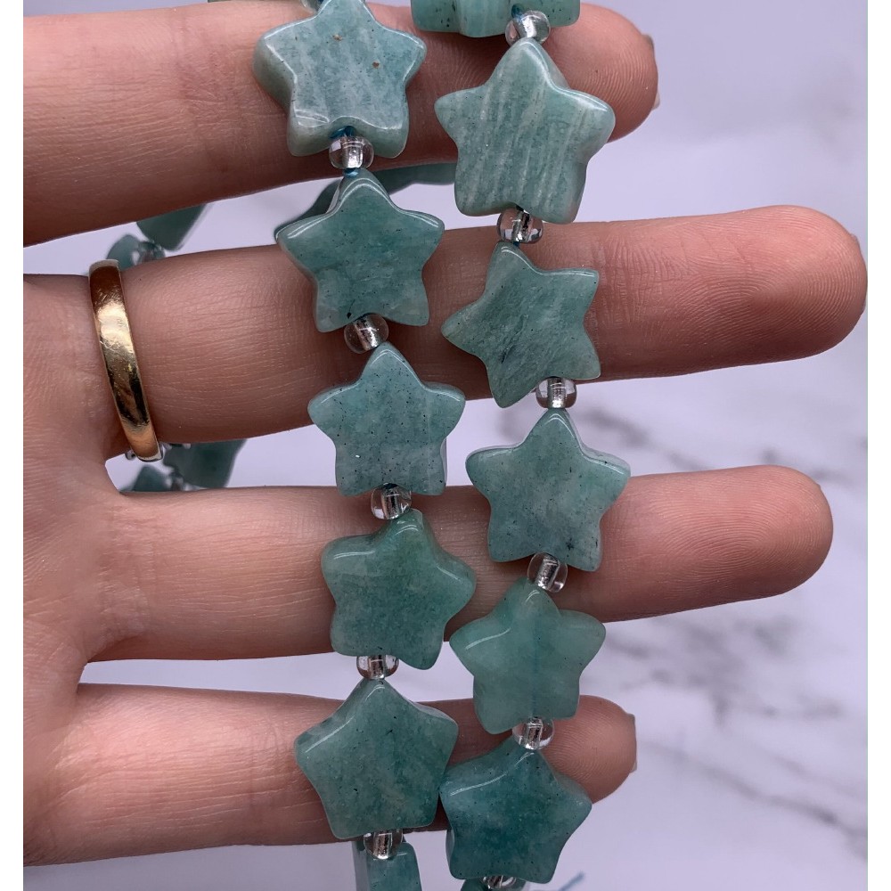 Каменные бусины, Амазонит, звездочки, 16 мм, длина нити 38 см, на нити 21 шт. 0 1748 ₽