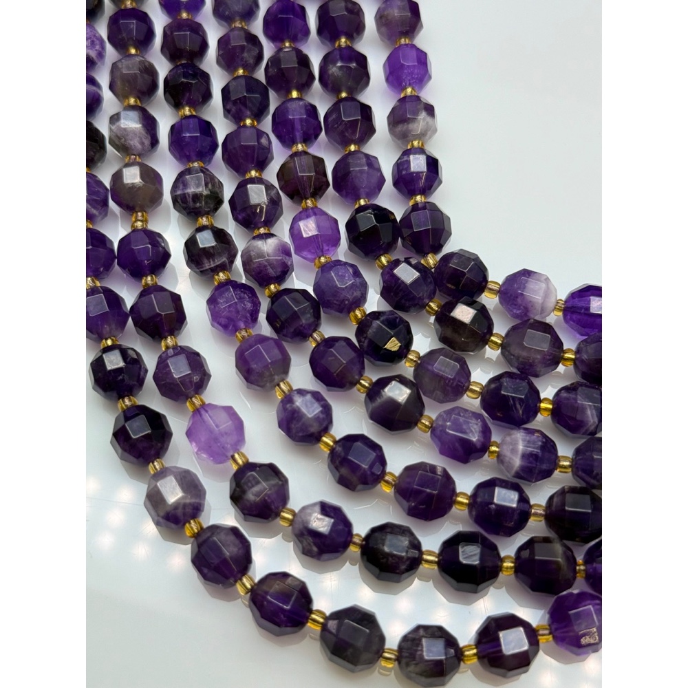 • Каменные бусины, Аметист, люкс, ювелирная огранка, 10х9 мм, длина нити 38 см