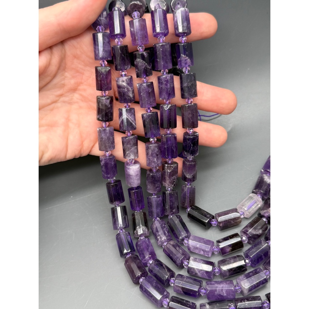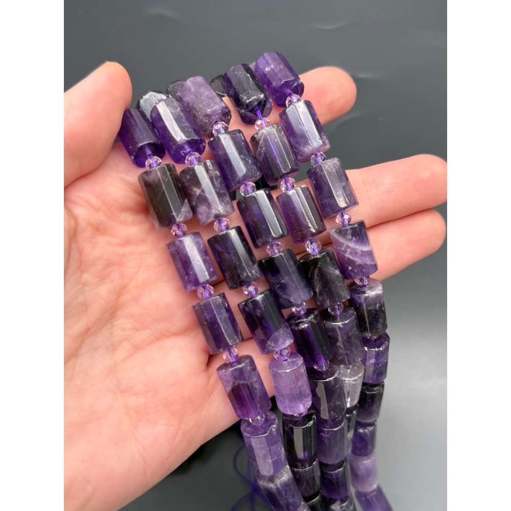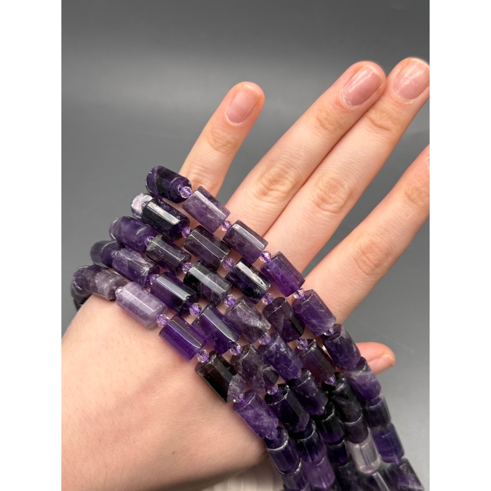 Теги: Каменные бусины, Аметист, столбики (трубочки), с гранями, размер~15х10 мм, длина нити 19 см, 20821, Фриформы Свободные формы
