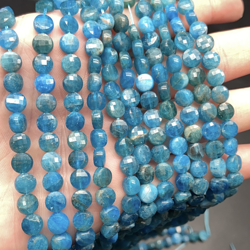 • Каменные бусины, Апатит, монетка, огранка, 6х3 мм, длина нити 38 см