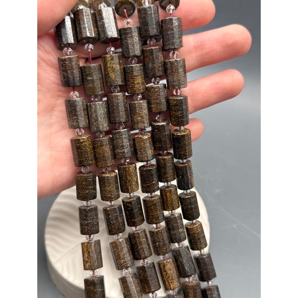 Каменные бусины, Бронзит, столбики (трубочки), с гранями, размер~15х10 мм, длина нити 19 см 0 950 ₽