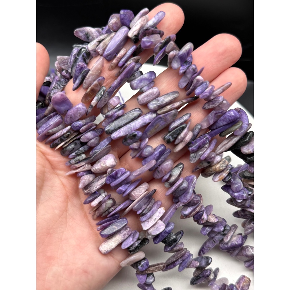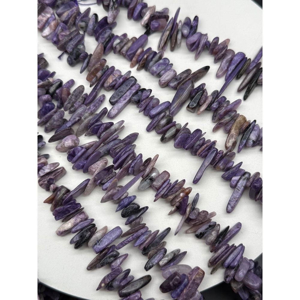 Каменные бусины, Чароит, фриформы, палочки, размер ~10-18х3 мм, длина нити 39 см