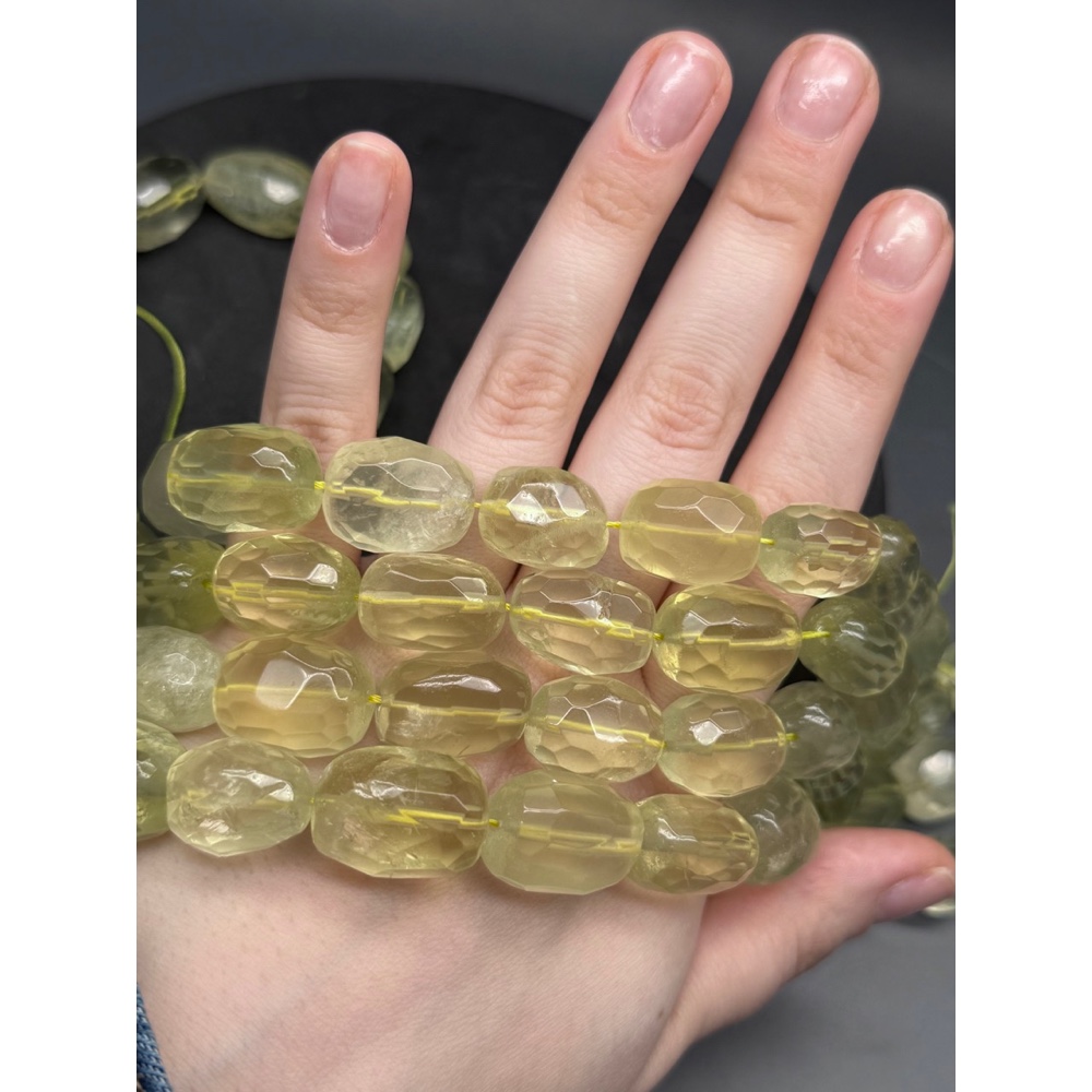 • Каменные бусины, Цитрин лимонный, бочонок, огранка, фриформы, 22х15 мм, длина нити 19 см