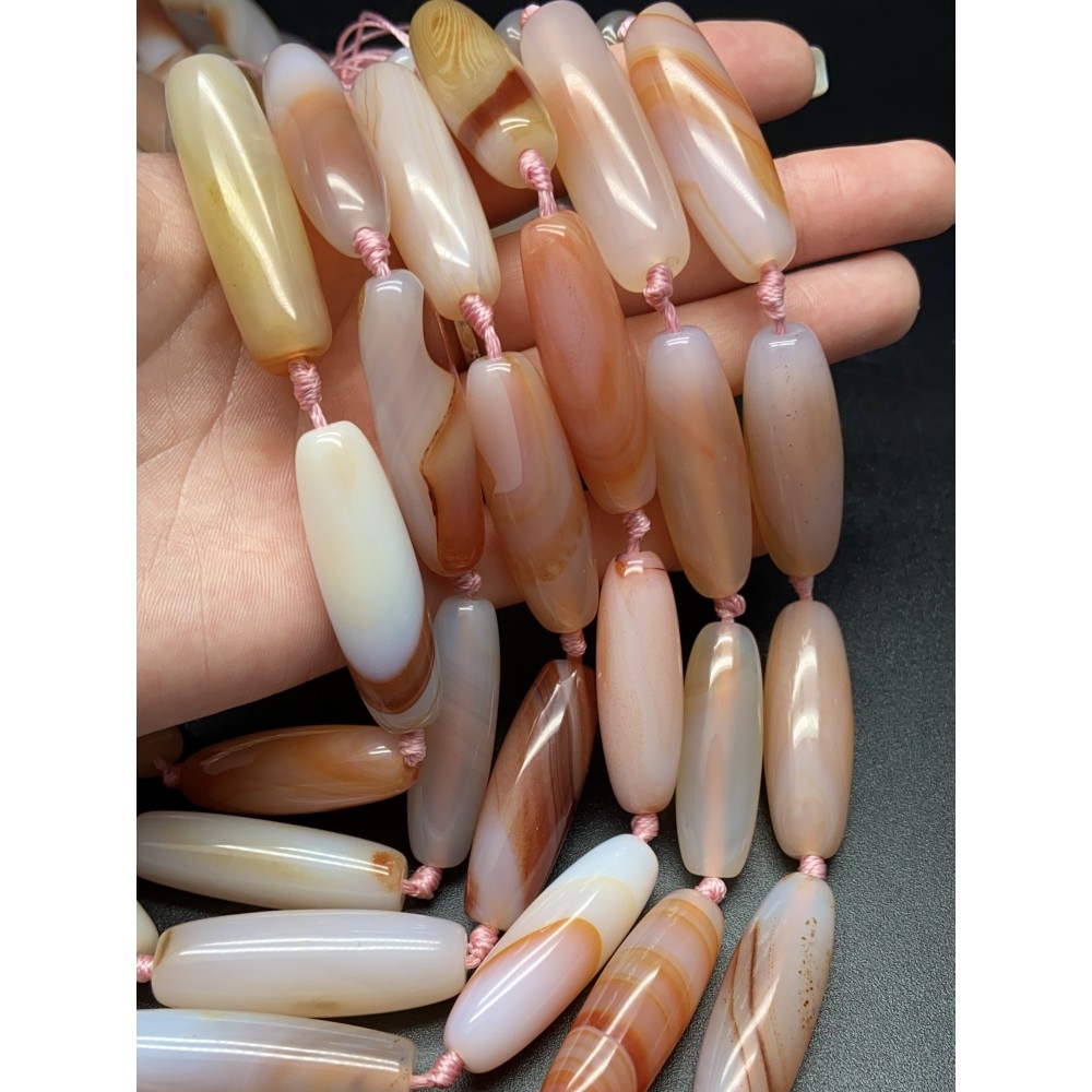 • Каменные бусины, Дзи природные, сердолик, 40х12 мм, 8 штук на нити