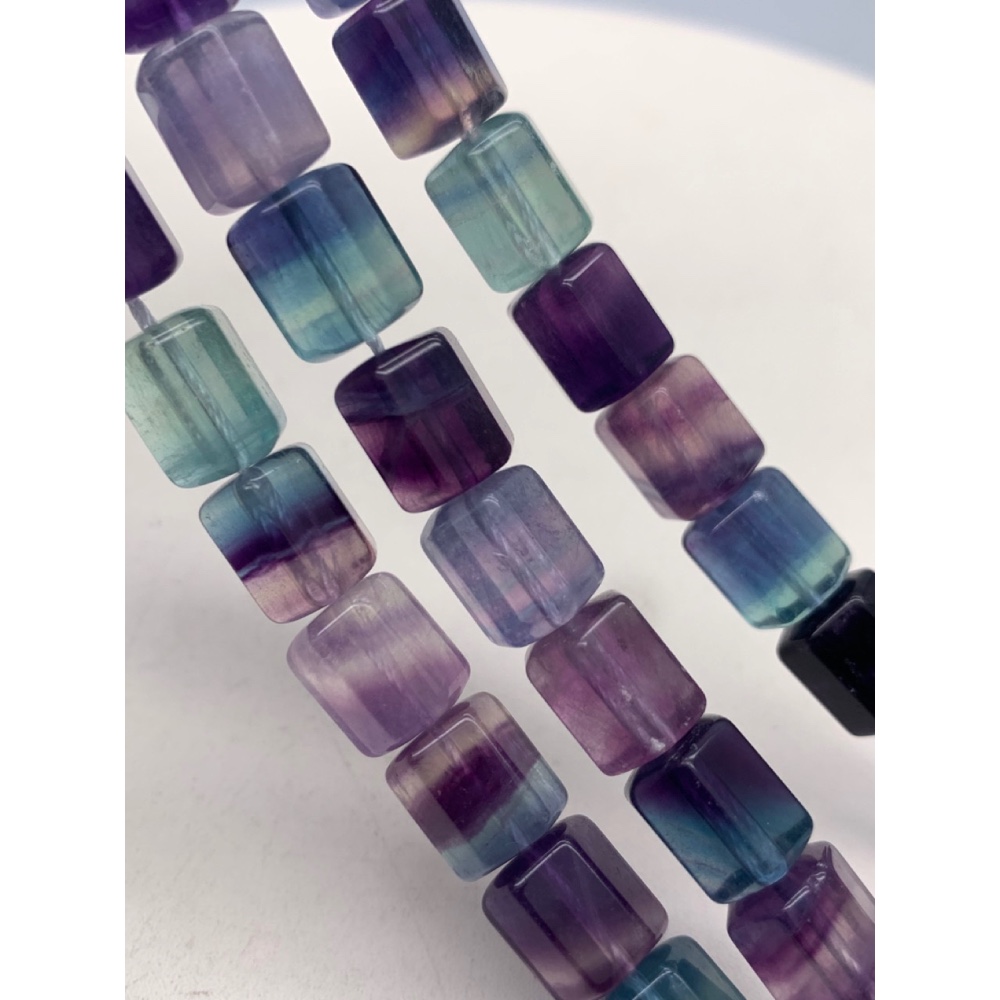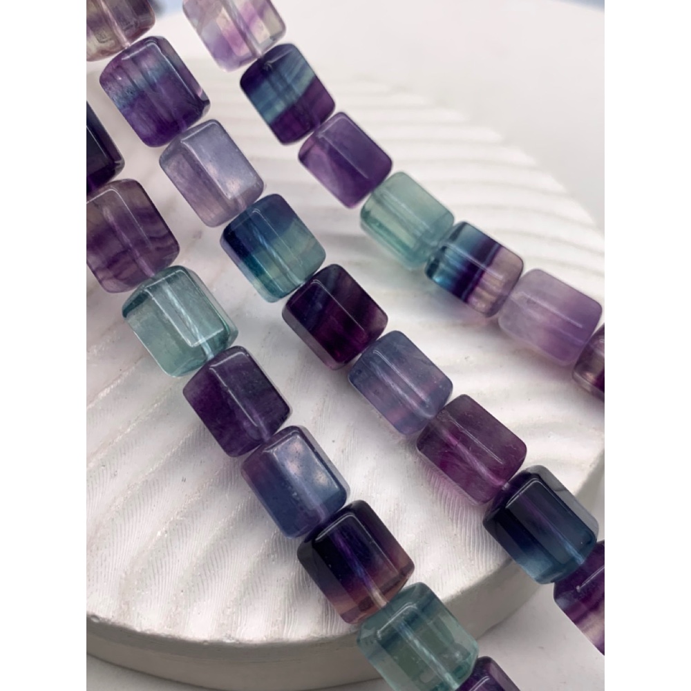 Каменные бусины, Флюорит полихромный, люкс, граненый брусок, размер 10х9 мм, длина нити 40 см