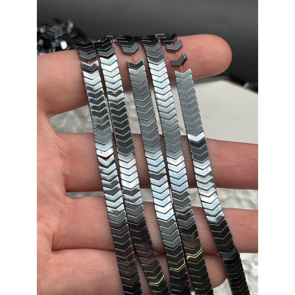 Теги: Каменные бусины, Гематит синтетический, стрелка, цвет темное серебро, размер 6х2 мм, нить 40 см, 21286, Нестандартные формы