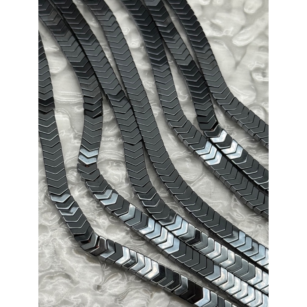 • Каменные бусины, Гематит синтетический, стрелка, цвет темное серебро, размер 6х2 мм, нить 40 см