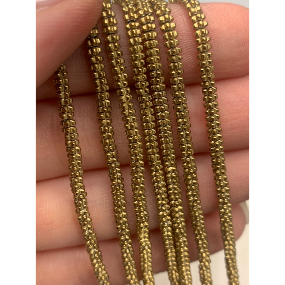 • Каменные бусины, Гематит синтетический, цветок, цвет золото, размер 3х1,5 мм, нить 38 см