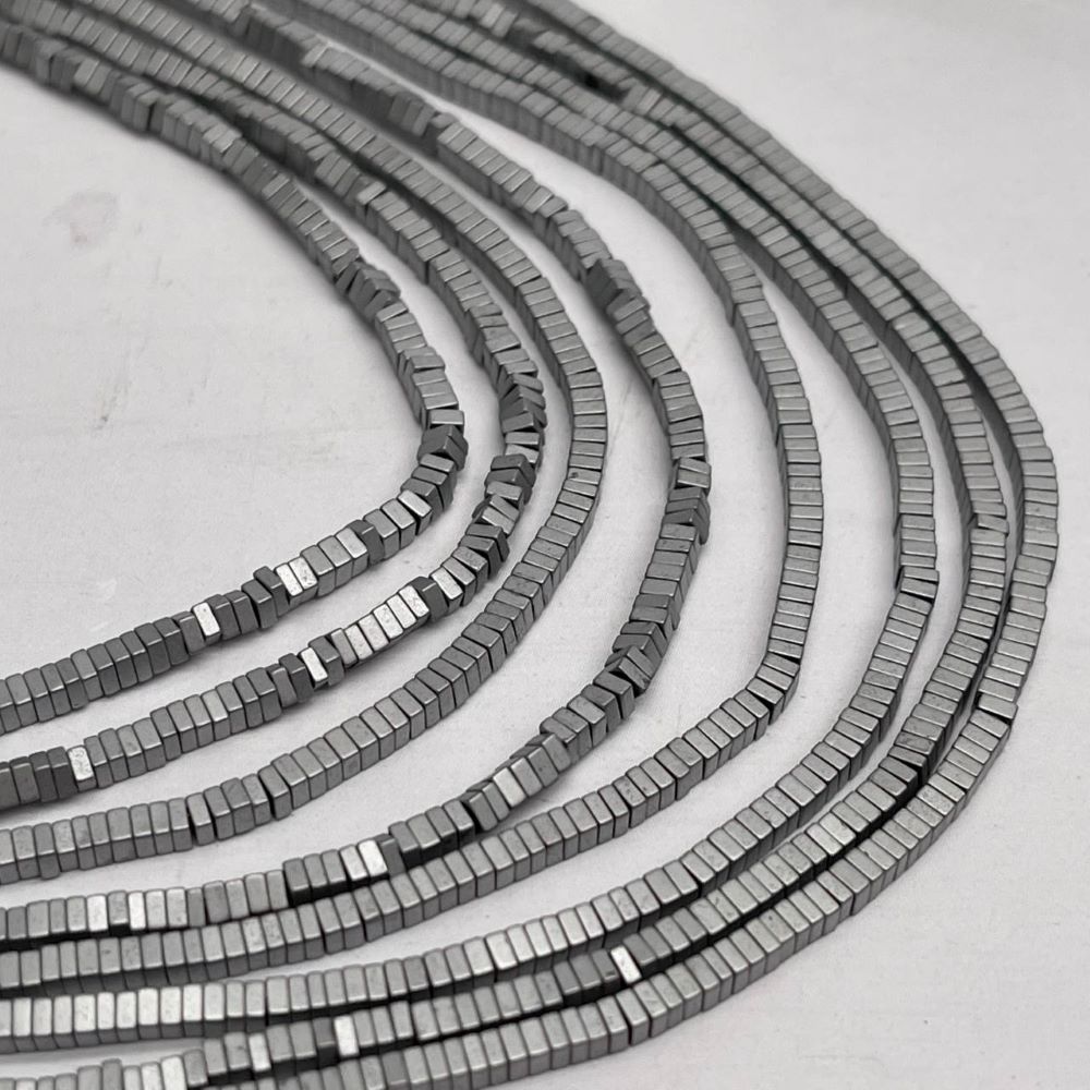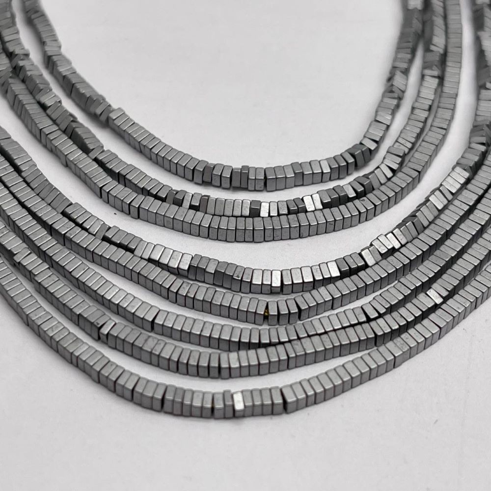 • Каменные бусины, Гематит синтетический, квадрат, серебро, матовый, размер 2х1 мм, нить 38 см