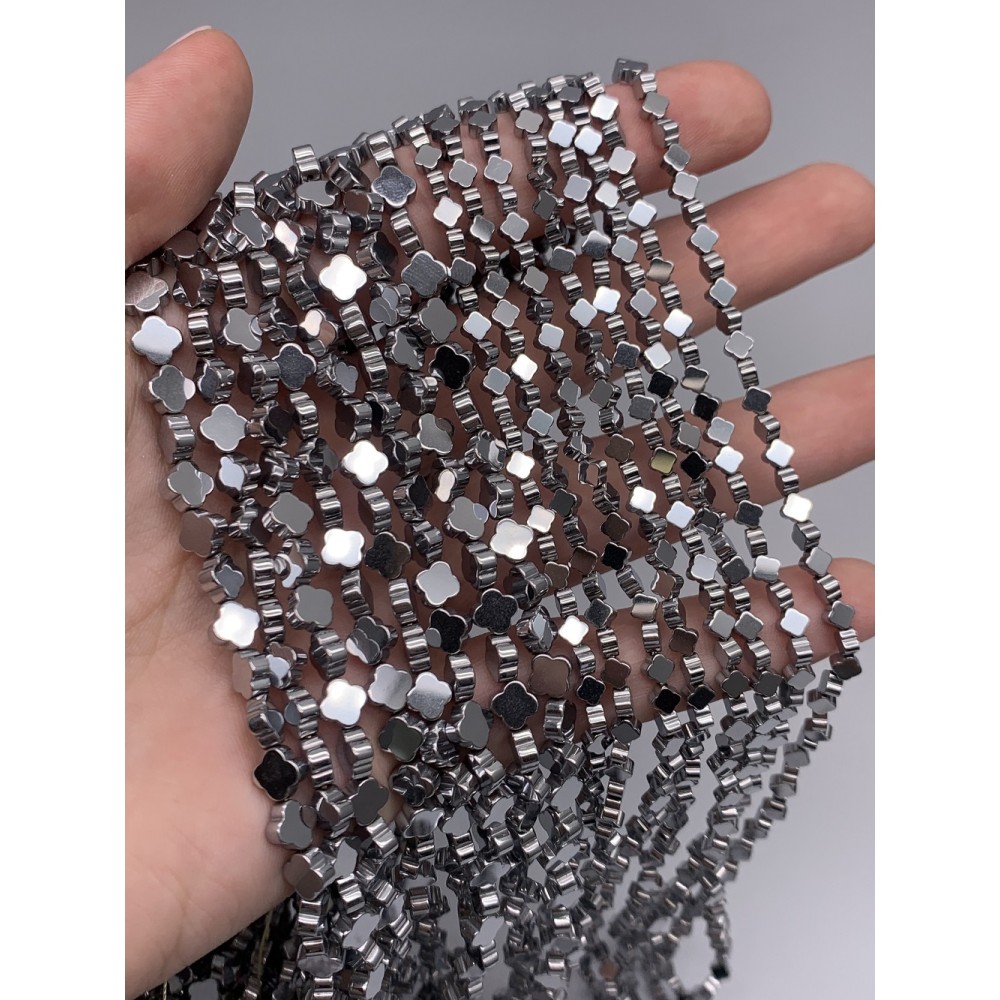 Каменные бусины, Гематит синтетический, серебро, клевер, размер 6 мм, нить 38 см