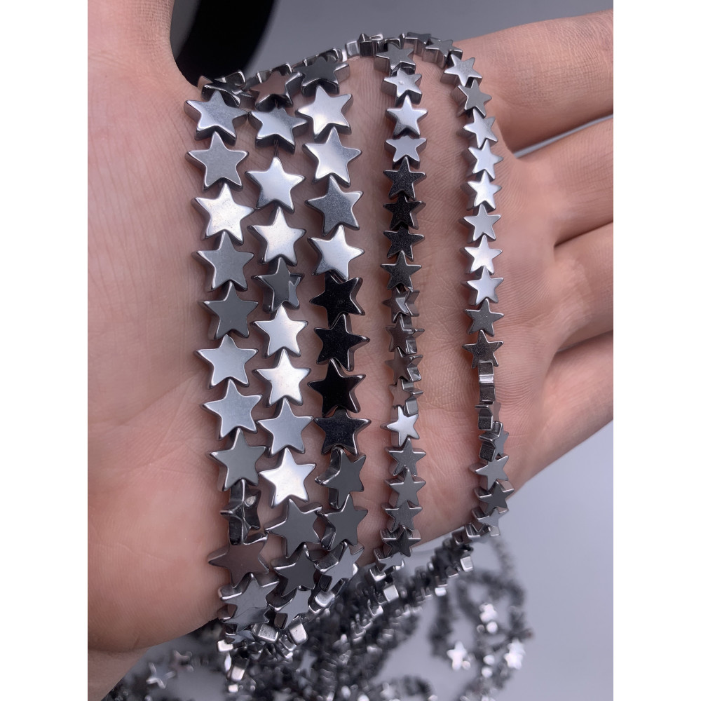 Каменные бусины, Гематит синтетический, серебро, звездочки, 6 мм, длина нити 38 см