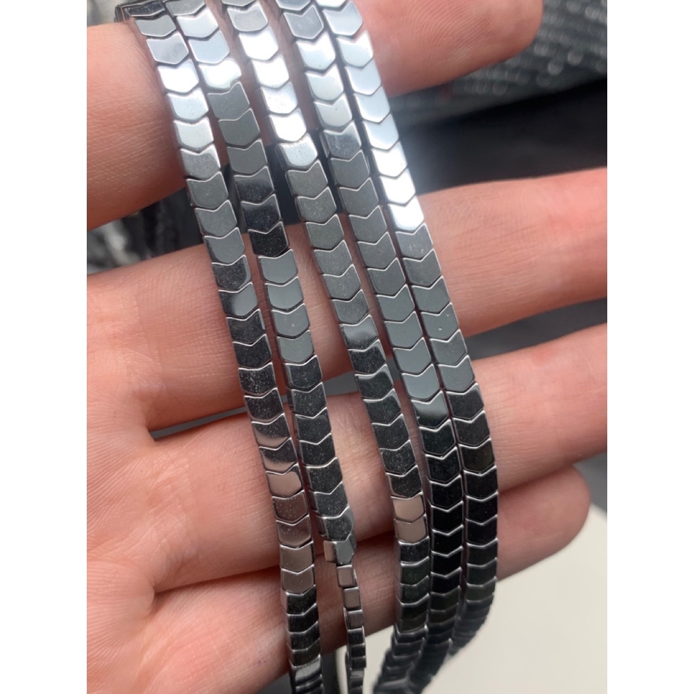 Каменные бусины, Гематит синтетический, стрелка, серебро, размер 4х3 мм, нить 38 см