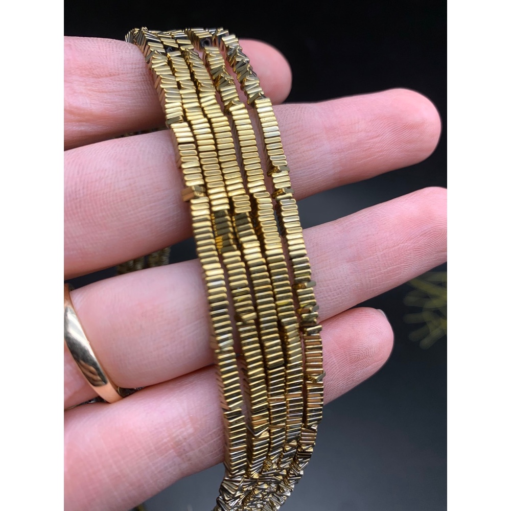 Каменные бусины, Гематит синтетический, золото, квадрат, размер 3х1 мм, нить 38 см