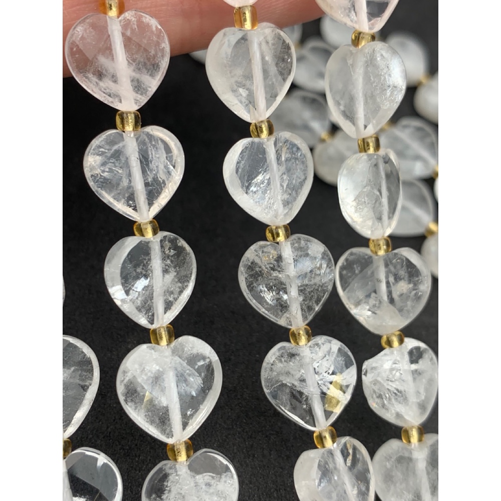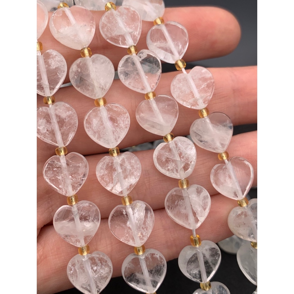 • Каменные бусины, Горный хрусталь, огранка, сердечки 12х5 мм, длина нити 17 см