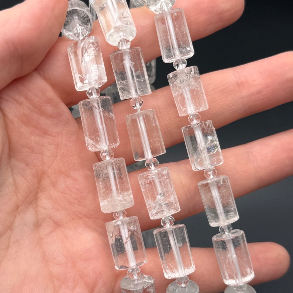 • Каменные бусины, Горный хрусталь, столбики (трубочки), с гранями, размер~15х10 мм, длина нити 19 см
