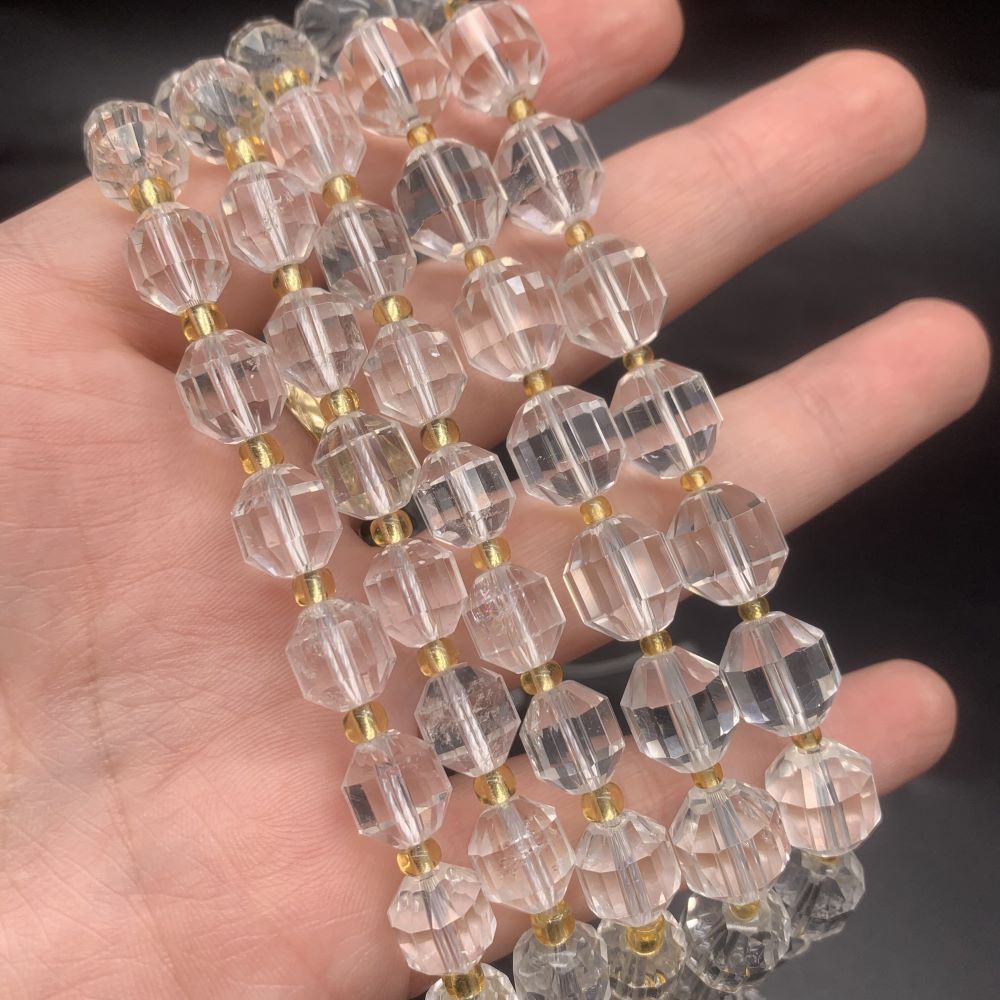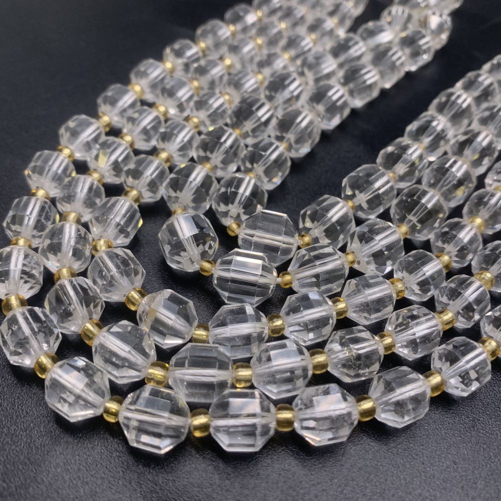 • Каменные бусины, Горный хрусталь, ювелирная огранка, 12х10 мм, длина нити 38 см