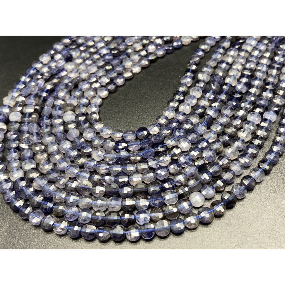 • Каменные бусины, Иолит, Водяной Сапфир, монетка, огранка, 4х2,5 мм, длина нити 38 см