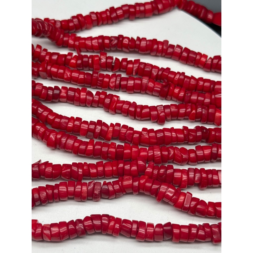 Каменные бусины, Коралл, красный, тонированный, фриформы, шайба, размер ~8х3 мм, длина нити 40 см