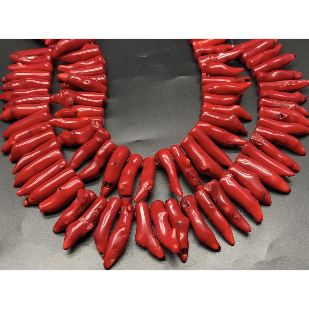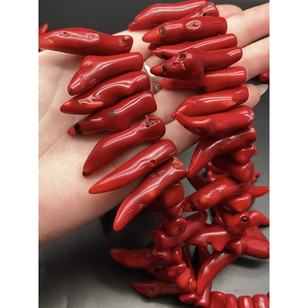 • Каменные бусины, Коралл, красный, тонированный, Фриформы, "перец", 35х9 мм, длина нити 38 см
