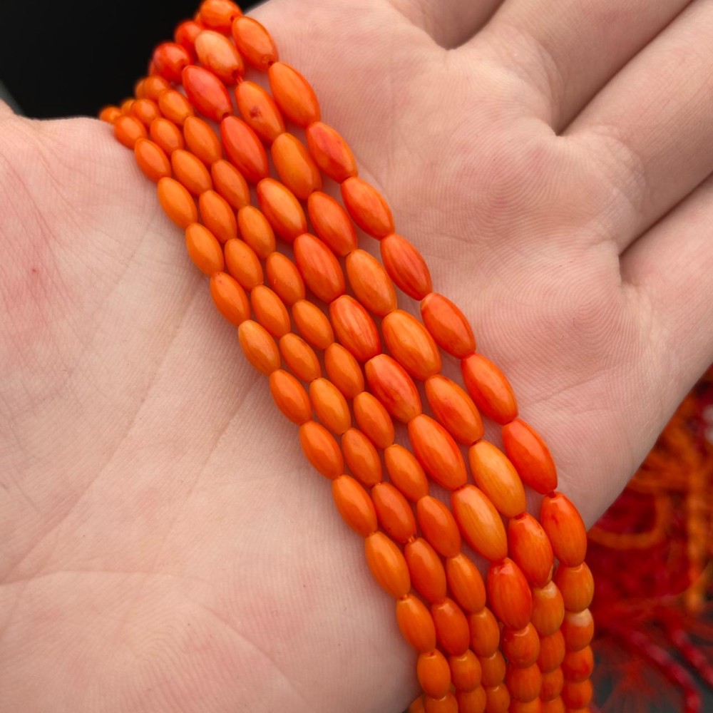• Каменные бусины, Коралл, рис, оранжевый, тонированный, 8 х 4 мм, длина нити 38 см