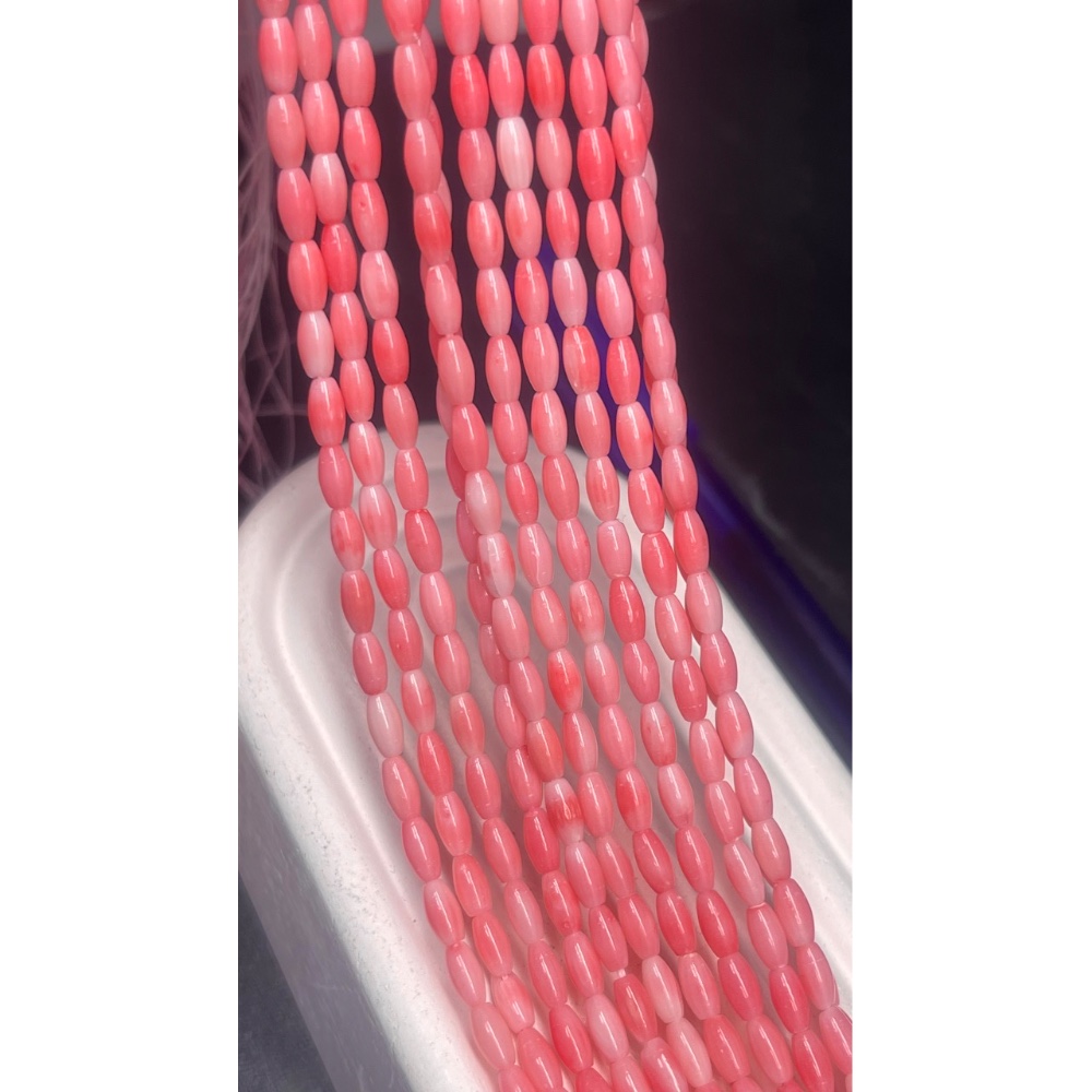• Каменные бусины, Коралл, рис, розовый, тонированный, 6х3 мм, длина нити 38 см