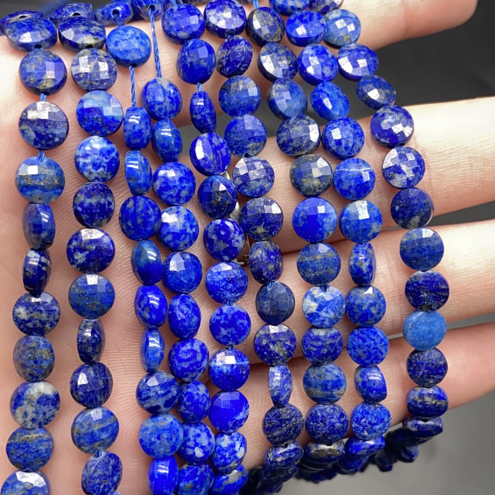 • Каменные бусины, Лазурит, монетка, огранка, 6х3 мм, длина нити 38 см