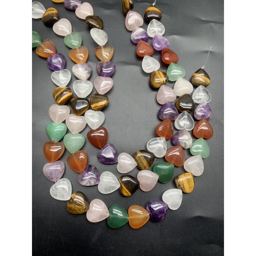 Каменные бусины, Микс самоцветов, сердечки, 12 мм, длина нити 38 см